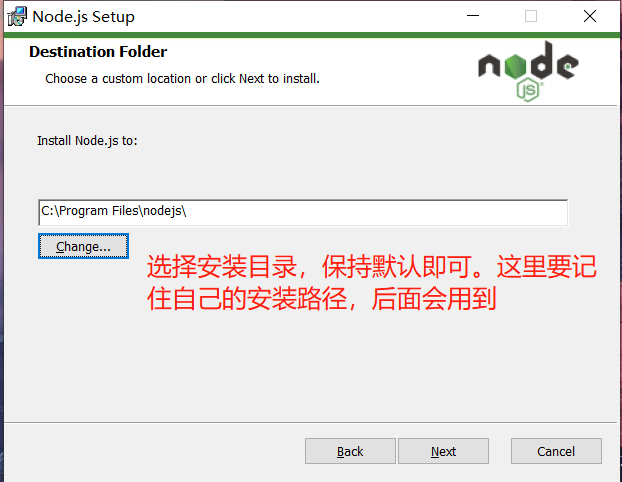 还记得上面的第二步的第3点吗,如下图。我这里选择的是d盘里的install目录下的node。