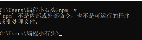 这就代表我们npm全局环境变量没有配置,接下来就教大家如何配置npm环境变量。