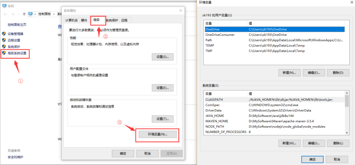 我的电脑->右键->属性->高级系统设置->高级->环境变量