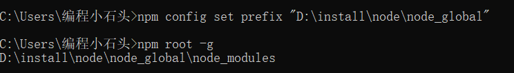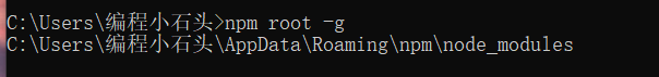 执行完以后在输入npm root -g 可以看到我们的目录已经变了