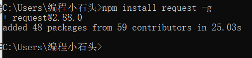 可以看到我们的d:\install\node\node_global目录下已成功的安装了request类库