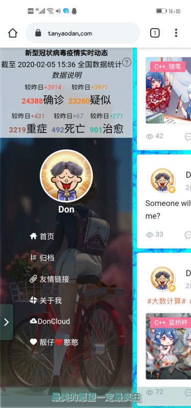 新型冠状病毒有多么可怕,我想大家都已经知道了。湖北爆发了新型冠状病毒,湖南前几天爆发了禽流感,四川发生地震,中国加油!昨天晚上我突发奇想地打算把疫情实时动态展示在自建站上,于是说干就干(先附上昨晚用puppeteer截的图片)。