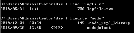 如 dir 命令会显示目录下所有文件夹和文件,可以使用管道命令| findstr "" 将dir的结果进行筛选,只保留需要的信息