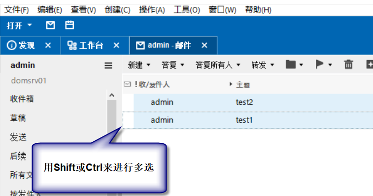 选择多封邮件,按Shift键或Ctrl键加鼠标就可以实现。