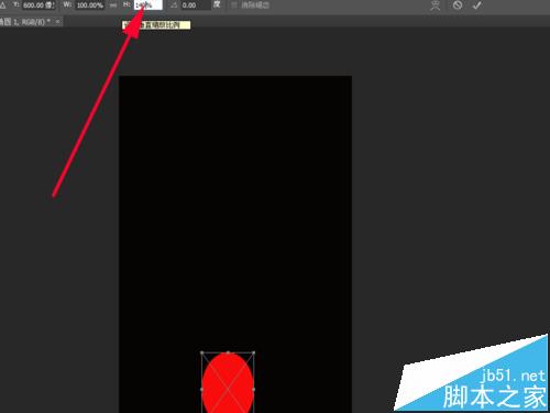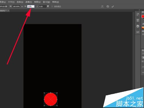 将指针移动到1-2s之间的5f处,执行编辑-自由变换命令,将圆的中心点移动到底边位置,垂直h设置为140%,然后确定。