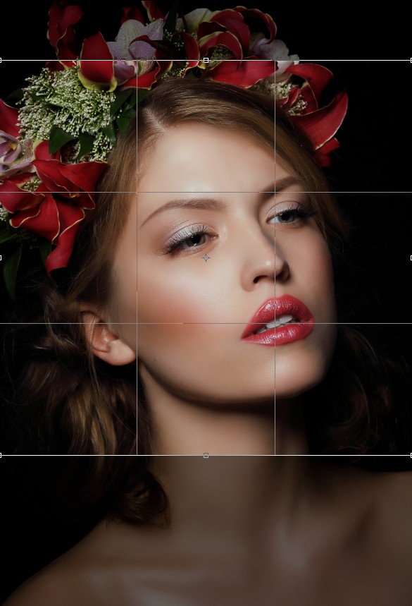 第一步 打开美女模特图片素材,使用裁剪工具(快捷键为c),选取颈部以上后确认。