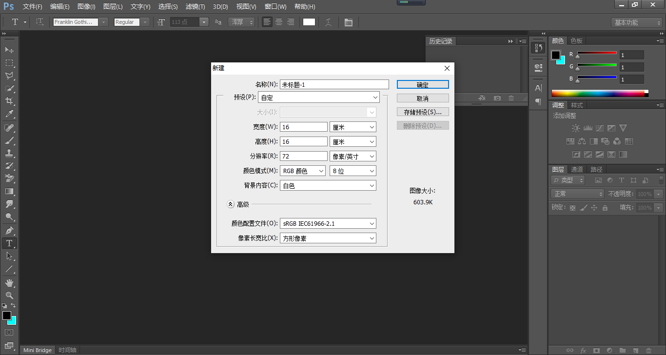 ? ? ? ?设置宽度、高度为16cm,点击 确定;