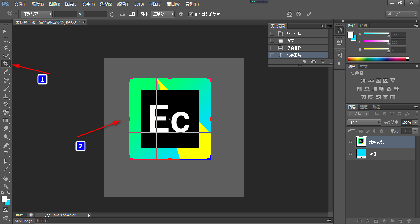 ? ? ? ?选择裁剪工具,选中矩形区域,按下Enter 键,完成裁剪。