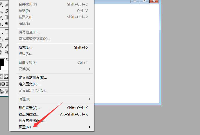 点击了编辑菜单之后,弹出了下拉菜单选中为 预置 选项