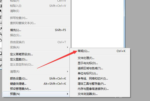 进入到了预置界面中,弹出了下一级菜单选中为 常规