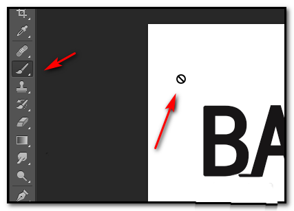 2、有些朋友可能会直接就选择画笔工具,然后,在文字上涂抹颜色。这是不行的哈,选择画笔工具后,可以看到,鼠标呈一条斜杠的黑圈;画笔是不能使用的。