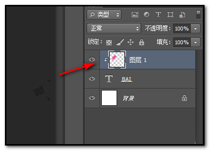 5、有些朋友就很烦恼了,这不行,那又不行,要怎样才能使画笔只作用于文字图层啊。当然是要小技巧啦。左手按住alt键;右手控制鼠标,把鼠标放在空白图层下边界,接近下图层的位置。这时,鼠标显出一个向下指的箭头。然后点击下。这时,图层里显出一个指向下图层的小箭头。