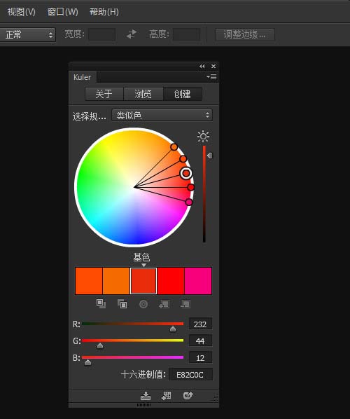 6、打开最常用的kuler扩展面板,已经能使用了。