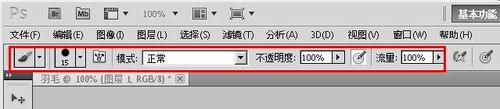 5、设置画笔的参数是:直径15,不透明度为100%,流量为100%