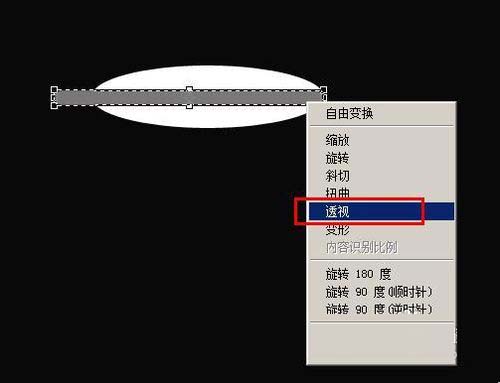 9、按下ctrl+t键,打开自由变换工具,在羽毛主干上右键单击,选择【透视】,这样在主干的周围出现了八个空心的四方形,拖动空心的四方形可以改变形状,我们将主干的一段变窄