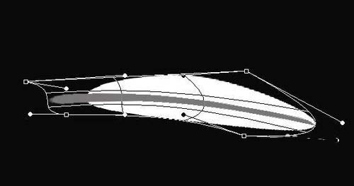 8、拖动到白色椭圆的中间,形成一个大概的羽毛的形状
