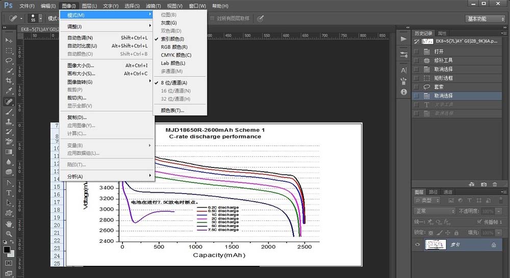 2、如果想要正常编辑的话,我们需要打开“图像”---“模式”,这个时候,我们看到现在“索引颜色”前面打了个对号。