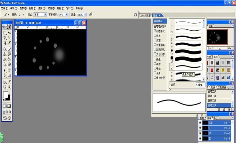 2、使用画笔工具。画不同的点。