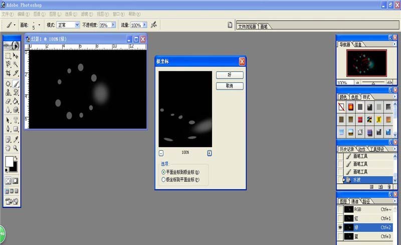 4、选择通道调板的绿色,使用滤镜的扭曲的极坐标,参数如图。