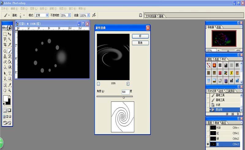 5、选择通道调板的蓝色,使用滤镜的扭曲的旋转扭曲,参数如图。