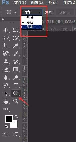 7、再次选择椭圆工具,将属性中“形状”改为“路径”