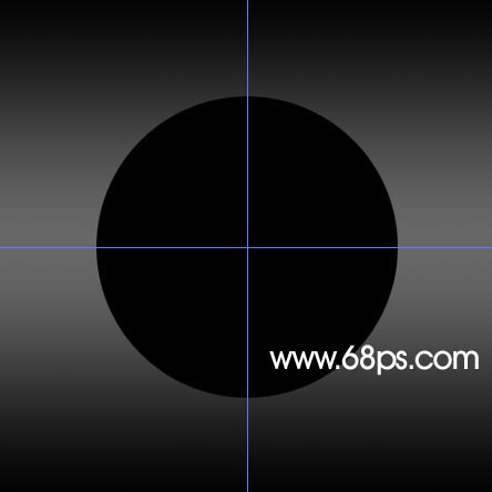 1.新建一个450 * 450像素的文件背景填充为灰色,然后拉出水平和垂直的两条参照线,新建一个图层以参照线交点为圆心,用椭圆选框工具绘制一个正圆然后填充黑色,不要取消选区效果如图1