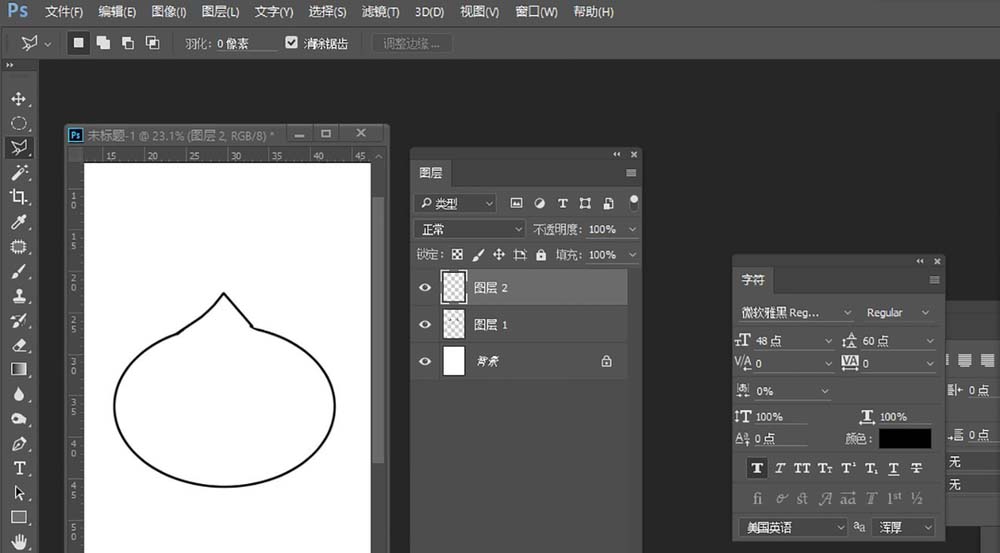 2、前景色为黑色,先绘制一个椭圆,在绘制半个三角形,形成图中这样。