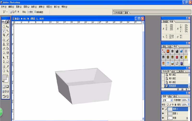 5、盒内壁的色彩效果,可以羽化和溶合。