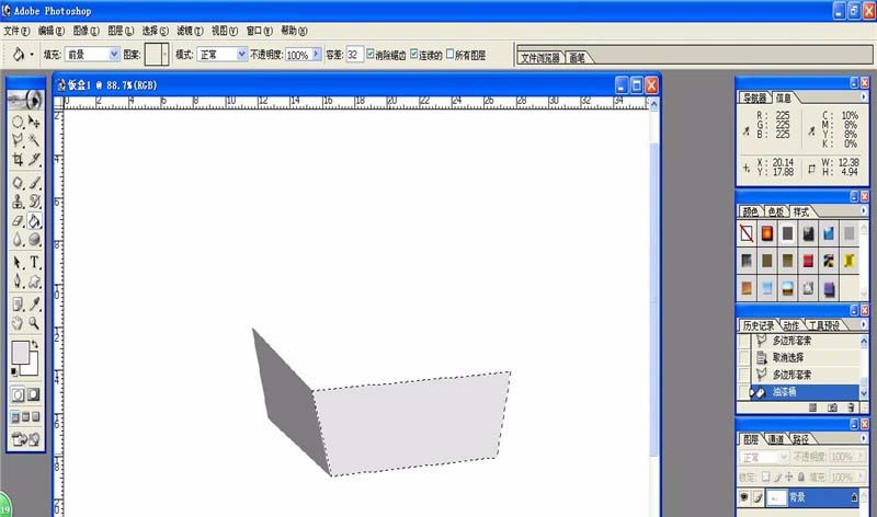1、平行四边形填充灰色,制作饭盒的侧壁。