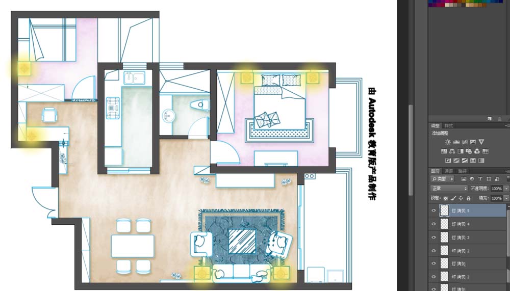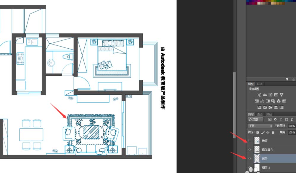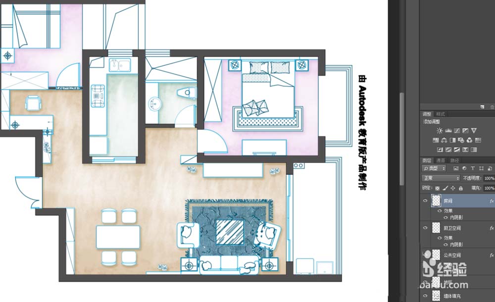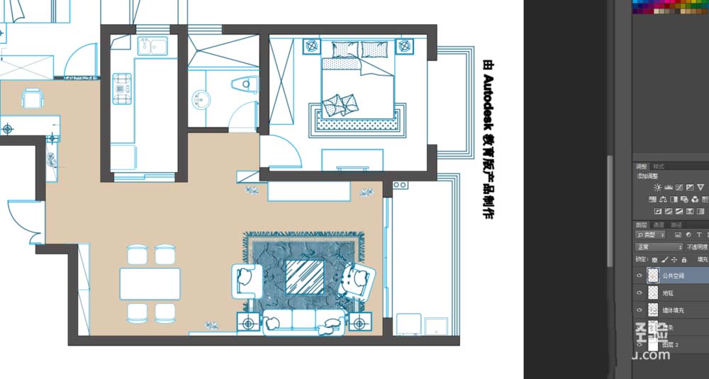PS怎么给室内平面图上色? ps彩色平面图的制作方法