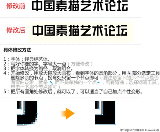 开始修改,用放大镜放大画布,看到字体的圆角部分,用