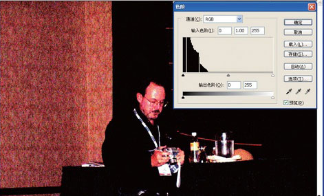 对于这类图像一定要小心,在尽可能地进行亮度校正时不要让色调分离(posterizing),或者显示过量的杂色。将“色阶”滑块拖动到头,可让图像变亮,但是会丧失很多色调上的渐变,从而导致严重的色调分离或杂色出现。应该增加足够的亮度和对比度,同时不要损坏色调曲线。很显然,这有一些限制并且您可能无法挽救某些图像。