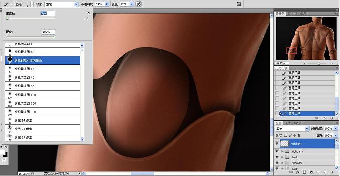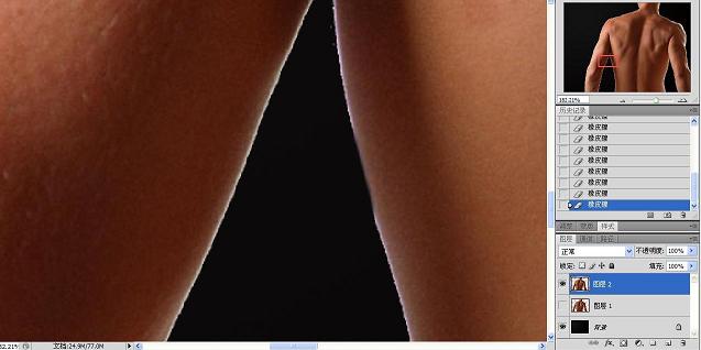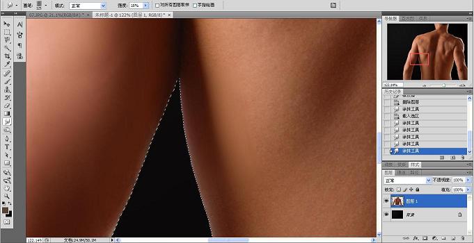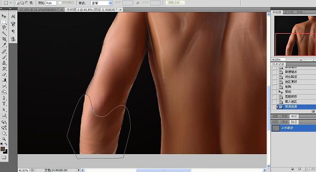 4、按着ctrl用鼠标点击该素材图层缩略图载入选区,然后使用低强度的涂抹工具将皮肤涂抹光滑。