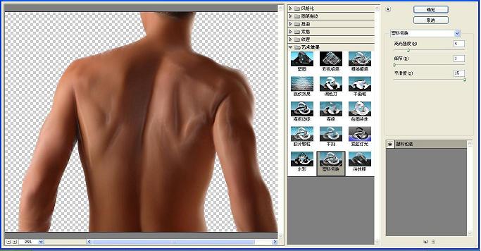 5、使用滤镜→艺术效果→塑料包装.调整效果。