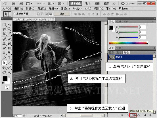 2、打开“路径”调板,选择路径并将其转换为选区。