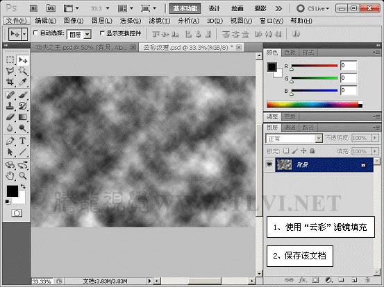 7、执行“滤镜”→“渲染”→“云彩”命令,完毕后将该文档保存。