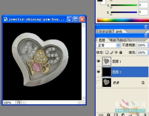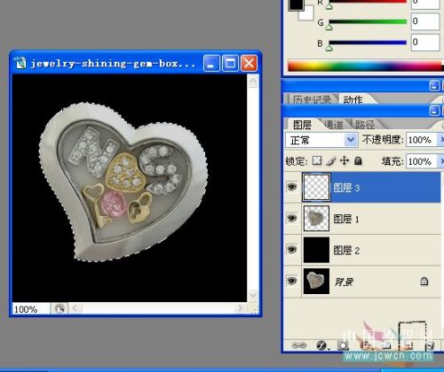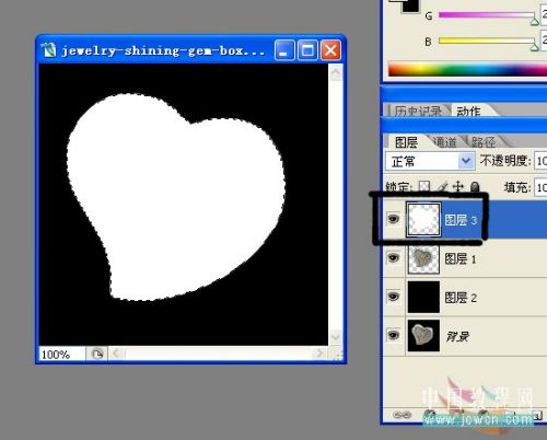 4、好了,现在,按住ctrl不放,用鼠标点下图层1,把宝石盒选起来后,点下下面的新建图层按钮,新建图层3