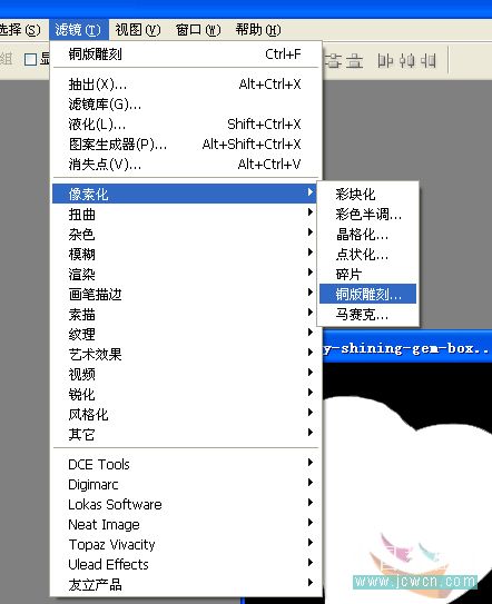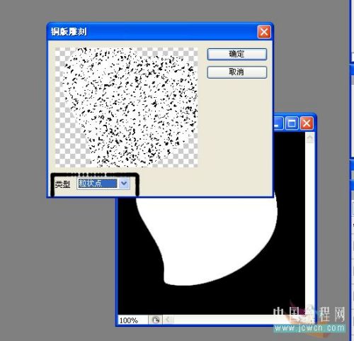 7、选择“滤镜——像素化——铜板雕刻”,类型选择“粒状点”