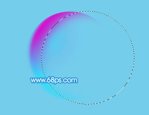 6、新建一个图层填充淡蓝色:#d8f3fe,用椭圆选框工具拉出下图所示的选区,羽化10个像素后按delete删除。