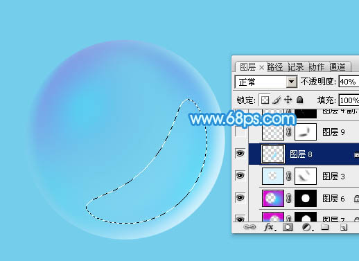 Photoshop制作漂亮的淡蓝色透明泡泡教程