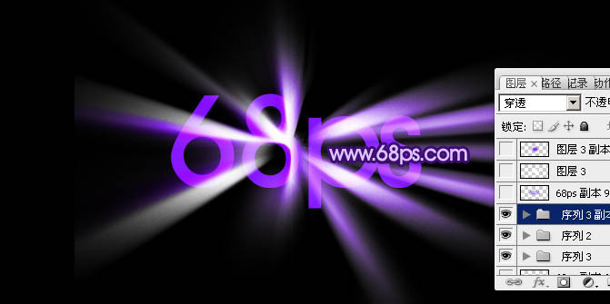 11、新建一个组,同上的方法制作其它光束,光束的中心点需要自己调整,效果如图14,15。