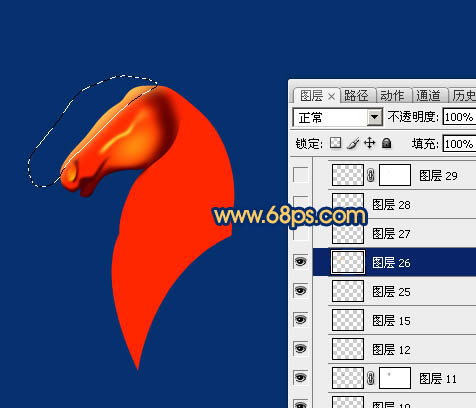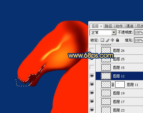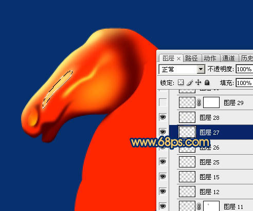 9、新建一个图层,给马头顶部增加一点高光,过程如图12,13。