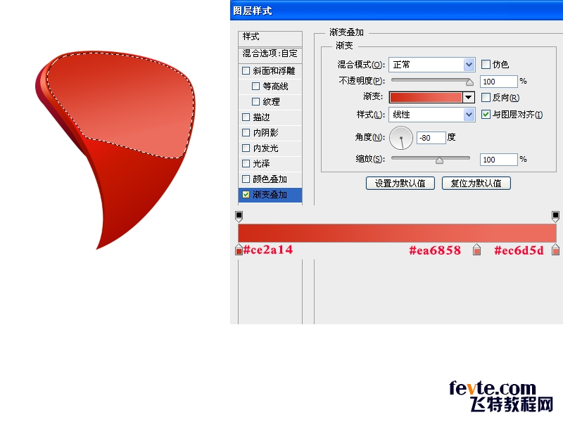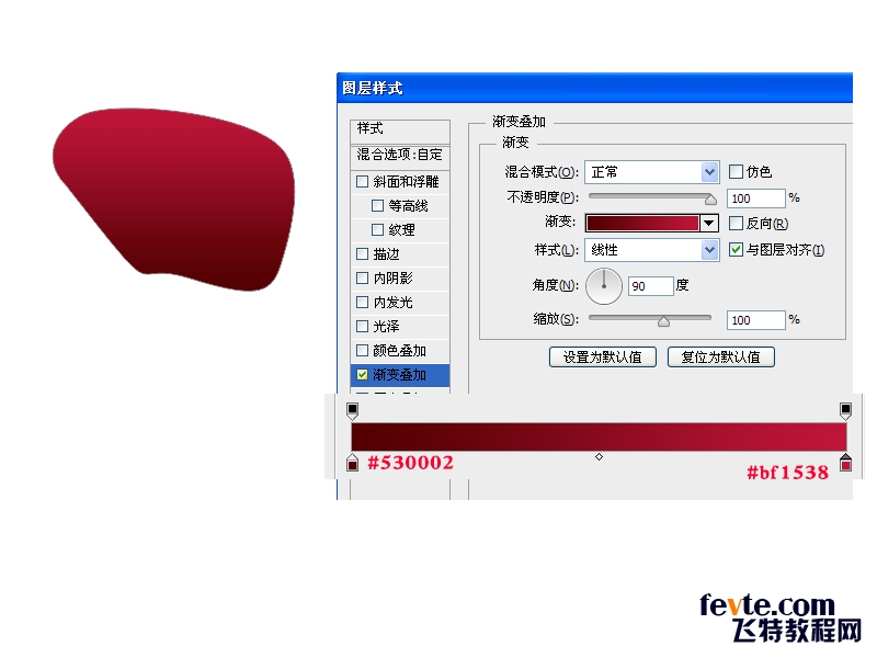 1.用钢笔工具勾出如图形状,随便填充颜色,接着做图层样式如下: