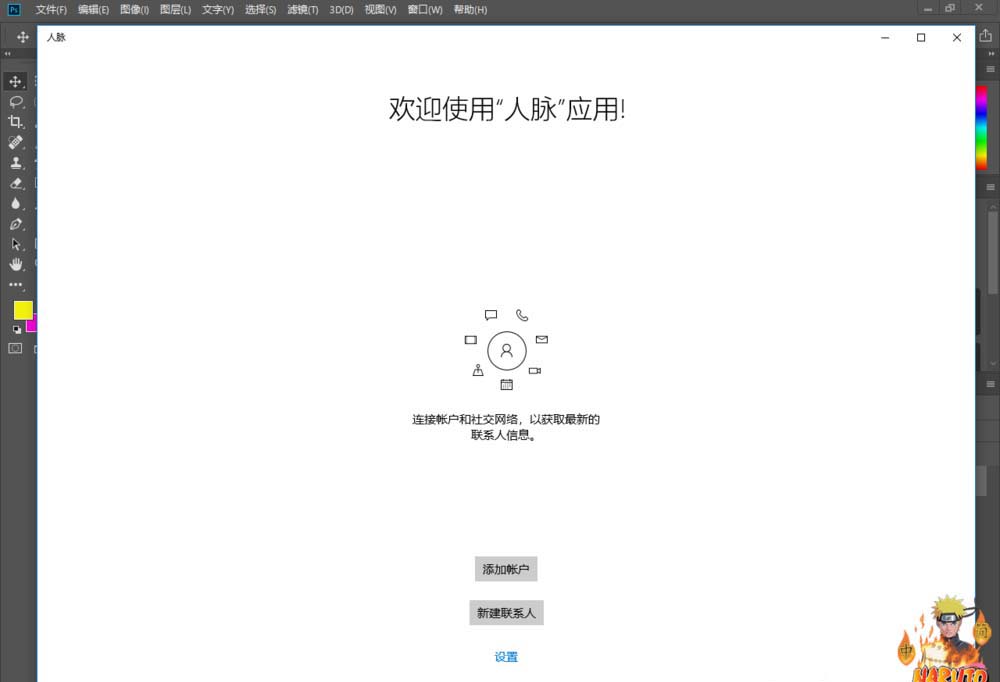 4、利用win 10自带的人脉功能,分享到人脉中,就等于共享到账户中,如下图所示: