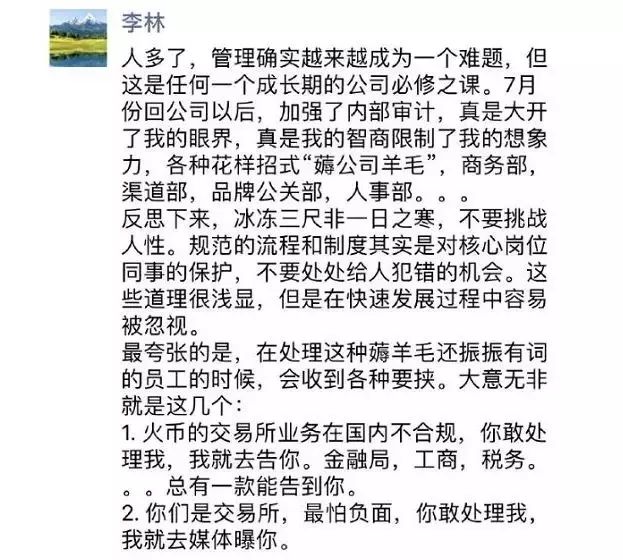 今年下半年,随着火币业务和生态紧锣密鼓的扩张,关于火币的负面新闻却层出不穷:裁员节流、内部贪腐等问题引起了吃瓜群众围观议论,也让李林“大开眼界”。随后火币内部开展了一场多维度的“反腐行动”,并且也在朋友圈感慨了一番,“人多了,管理确实越来越成为一个难题,但火币的价值观不容挑战,坚决杜绝“薅公司羊毛”的现象。 很明显,他想通过重新整顿内部,扩大业务生态布局,让火币突破现有状态,再创新高。