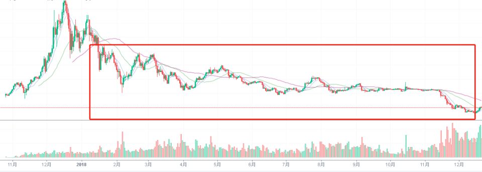 △2018年,数字货币市场陷入漫漫熊市,图为比特币价格走势