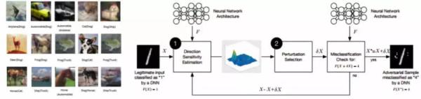 Matrix AI区块链提出了一种新的基于深度学习的挖矿机理,其来源是针对深度神经网络的对抗攻击。当前,深度神经网络最成熟的应用领域是图像识别。然而,近来人们发现深度神经网络存在着「盲点」,即以一定方式修改图片,此时人眼仍然能够正常分辨图片内容,但深度神经网络却会做出错误分类结果。图4左边图片是单像素攻击的例子,图片只有一个像素变化,就可以成功「欺骗」深度神经网络。