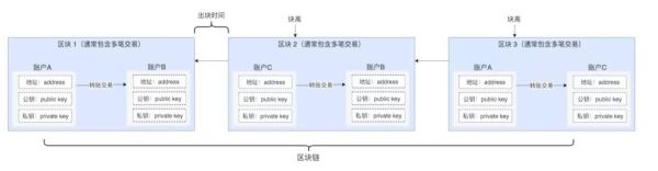 4、区块链Blockchain:整本账本(多页),账本按照时间顺序装订,区块链则是不同的区块按照矿工的大包时间链接成串。