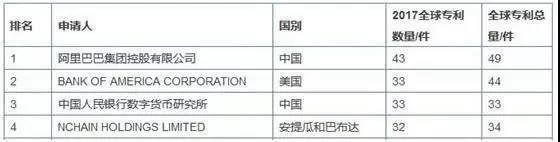 根据此前发布的《2017全球区块链企业专利排行榜》显示,中国在区块链专利的增速远超美国,领先全球。其中阿里巴巴以49件排名第一,这些专利全部出自蚂蚁金服技术实验室。这被外界解读为阿里巴巴将“all in”区块链。