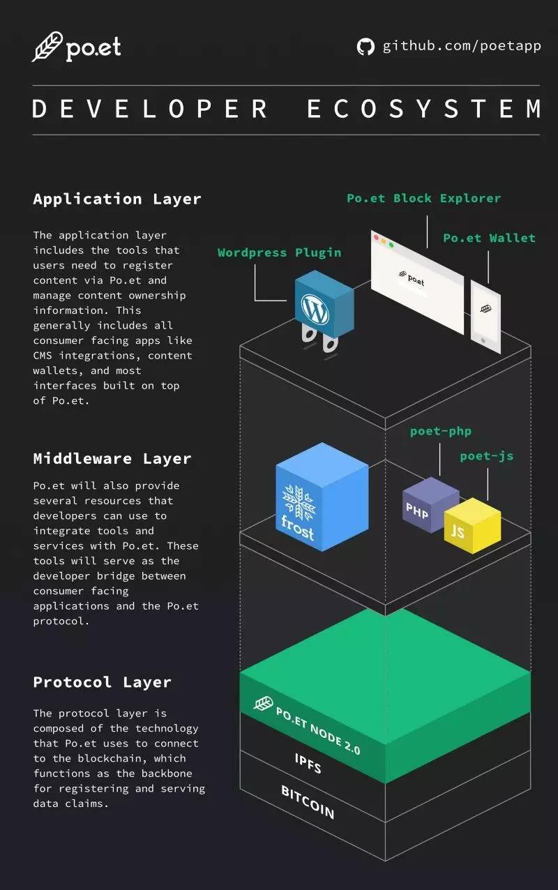 协议层由Po.et用来连接区块链的技术组成,作为注册和提供数据声明的主干。